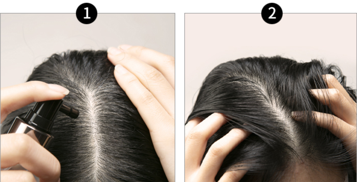 - Xịt trực tiếp vào da đầu (tập trung vùng bị thưa tóc)