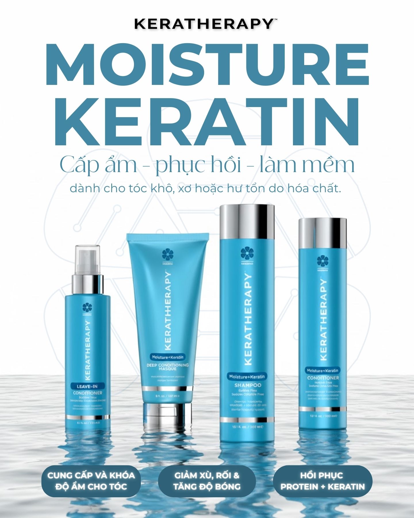 KERATHERAPY KERATIN MOISTURE - Phục hồi keratin và dưỡng ẩm toàn diện cho tóc khô xơ, hư tổn ngay tại nhà